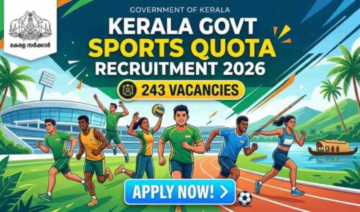 കേരള സംസ്ഥാന സർക്കാർ സർവ്വീസിൽ പ്രഗത്ഭരായ കായികതാരങ്ങൾക്ക് (Outstanding Sports Persons) ജോലി നൽകുന്ന പദ്ധതി പ്രകാരം പുതിയ വിജ്ഞാപനം പ്രസിദ്ധീകരിച്ചു. പൊതുഭരണ വകുപ്പാണ് (General Administration Department) വിജ്ഞാപനം പുറത്തിറക്കിയിരിക്കുന്നത്.…