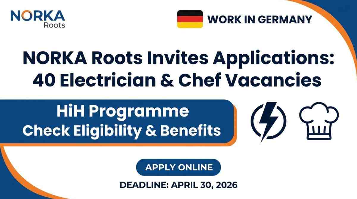 ജർമ്മനിയിലെ ഇലക്ട്രീഷ്യൻ, ഷെഫ് ഒഴിവുകളിലേക്ക് ഓൺലൈനായി അപേക്ഷിക്കാനുള്ള അവസാന തീയതി 2026 ഏപ്രിൽ 30 ആണ് (30th April 2026).