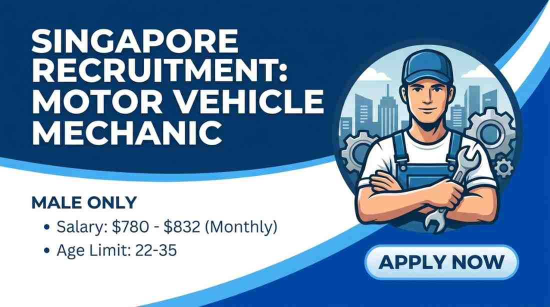 സിംഗപ്പൂരിലെ മോട്ടോർ വെഹിക്കിൾ മെക്കാനിക് ഒഴിവുകളിലേക്ക് സി.വി (CV) സമർപ്പിക്കാനുള്ള അവസാന തീയതി 2026 മെയ് 04 ആണ്.